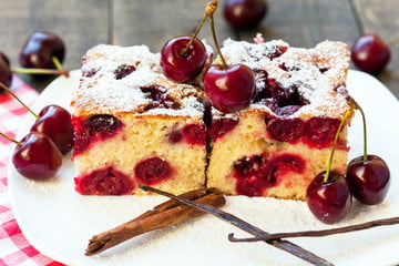 12. Poți să presari zahăr pudră deasupra prăjiturii cu visine înainte de servire, dacă dorești.