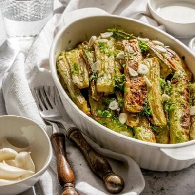 - Taie în bucatele generoase și serveste caldă alături de o salată proaspătă. Poftă bună!
